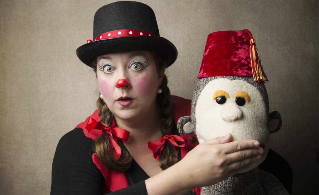 Sock Monkey Circus is a full circus performed in miniature! This performance features the magical talents of the host “Funny Honey” and her clever monkeys, who are trained to juggle, dance, and swing on a flying trapeze! All this while traveling in their very own circus train car that converts into a miniature stage. This circus can be featured outside to interact with spectators, or also featured on a stage for a more formal presentation.